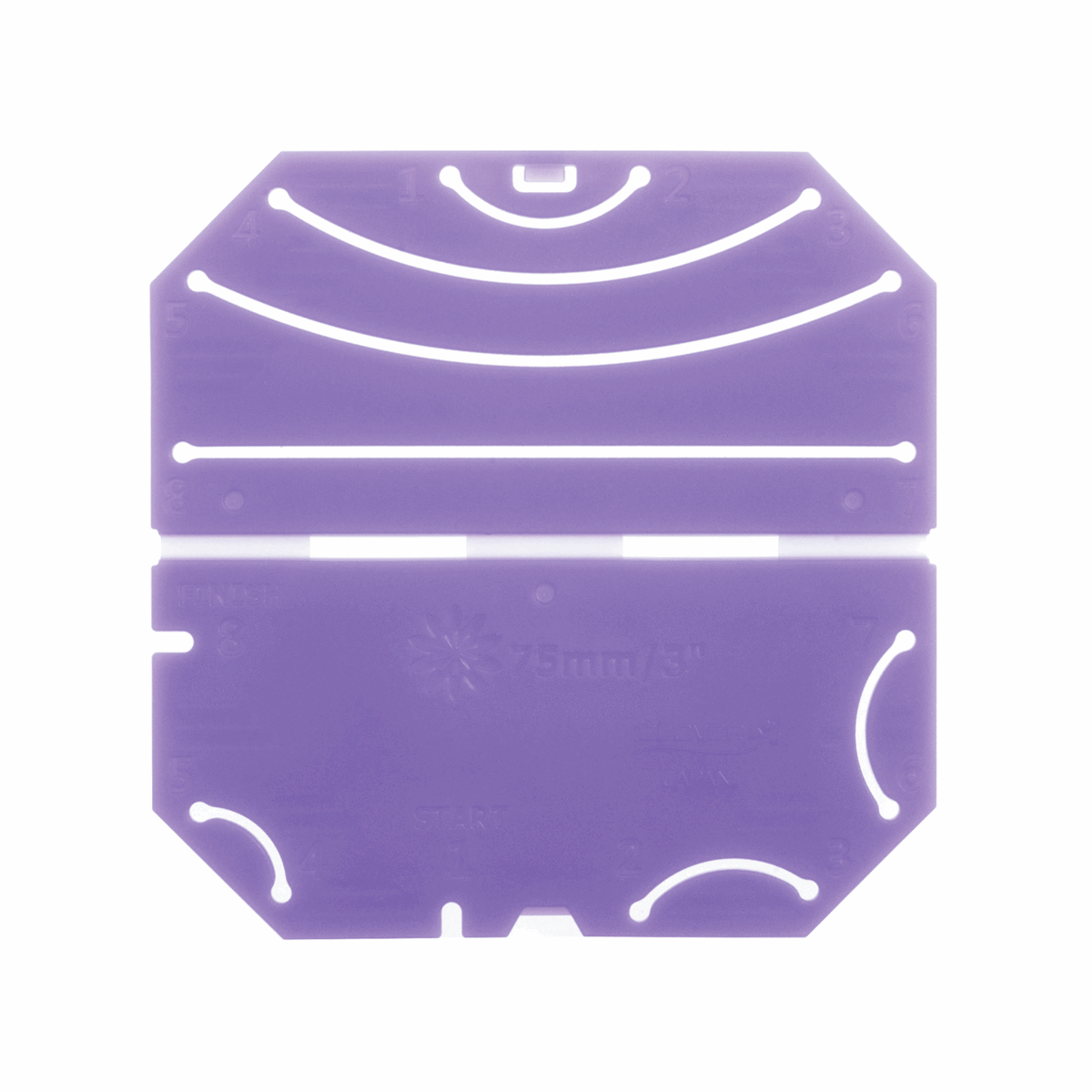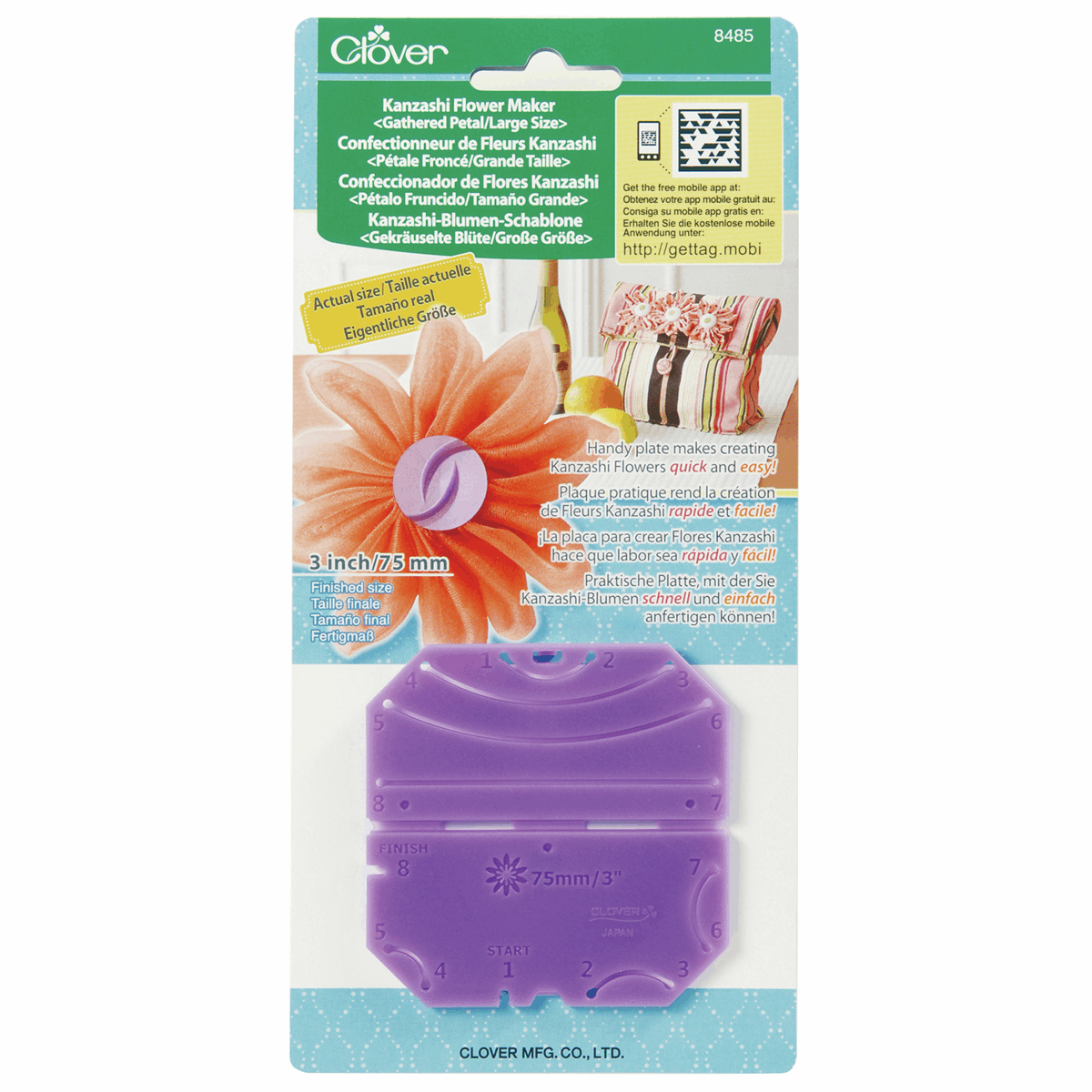 Kanzashi is traditional Japanese art form of folding and stitching fabric petals. This handy plate makes creating these flowers quick and easy. Make one petal using the Kansashi maker and then string more petals together to make a complete flower. Add more petals or adornments to make unique flower creations.