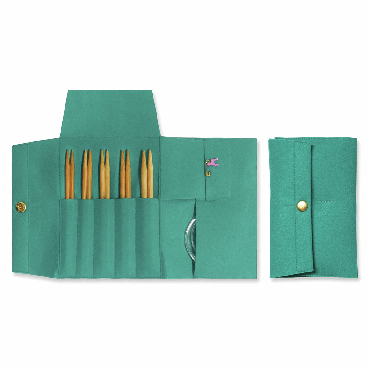 Experience the smooth lightweight feel of precious unbleached Indian bamboo knitting pins with a warm and natural touch for easy knitting. 5 pairs of 14cm pin shanks in sizes 5.00, 5.50, 6.00, 6.50 and 7.00mm; 3 cables for three lengths, 60, 80 and 100cm; 2 knobs for cable ends, 1 connector to combine cables.