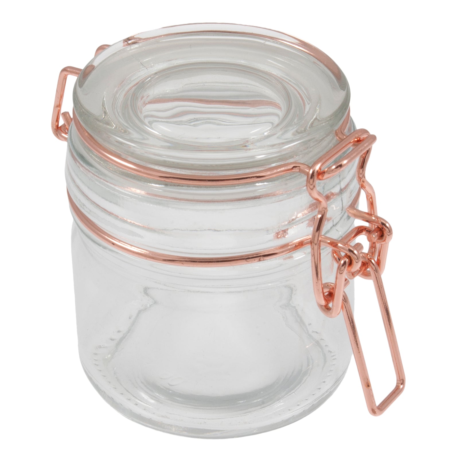 This cute little jar is so on-trend with a lovely rose gold clasp. They are great for storing little items such as, buttons, threads, beads, pom poms, ribbons, pins, knitting and sewing accessories. Dimensions (H/W), 7.5 x 6.5cm. Handwash only.