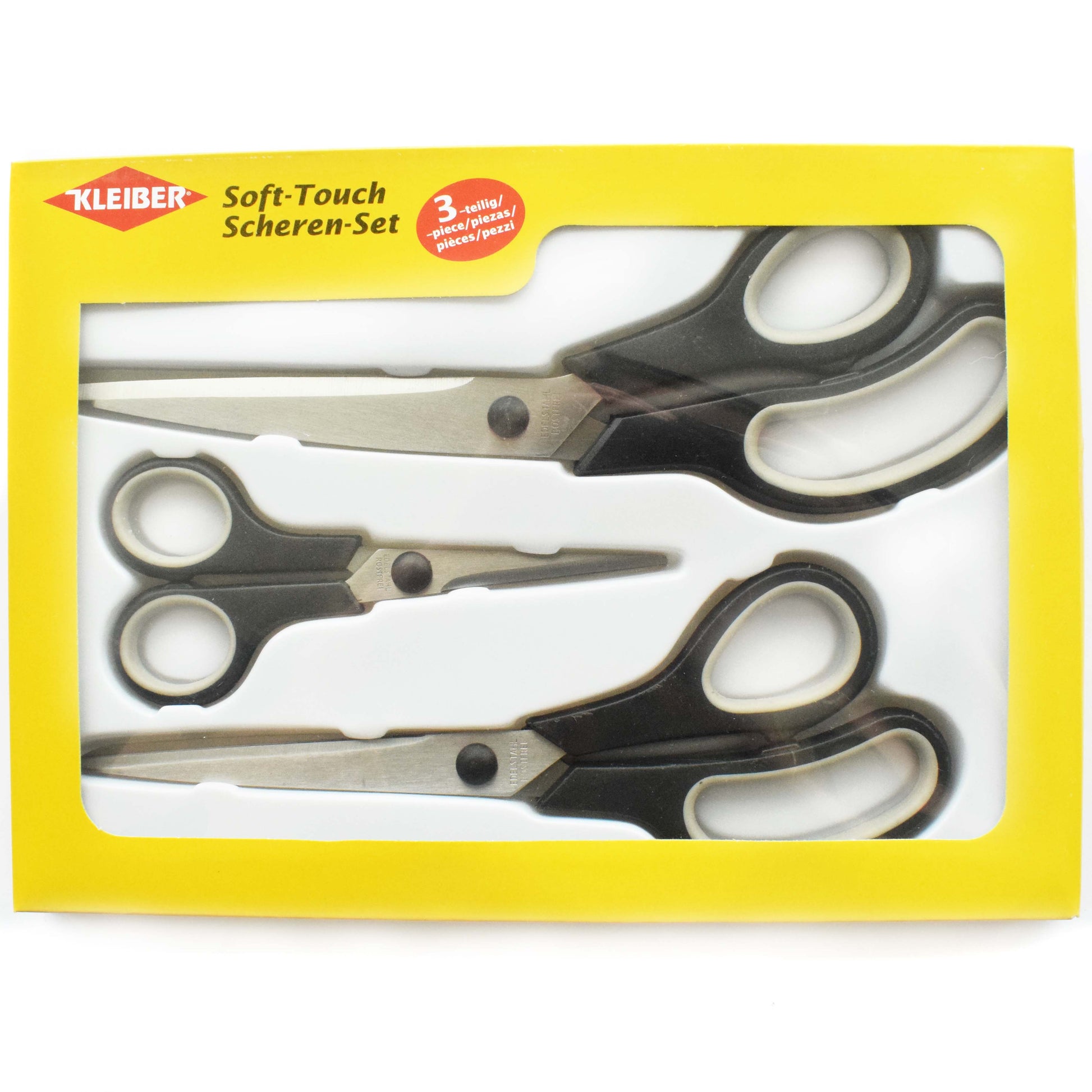 This striking set of 3 scissors from Kleiber all with high grade stainless steel blades are ideal for dressmaker, houshold and precision craft projects. The ABS soft touch grip makes them comfortable to use and will prevent blisters. For left or right handed use.