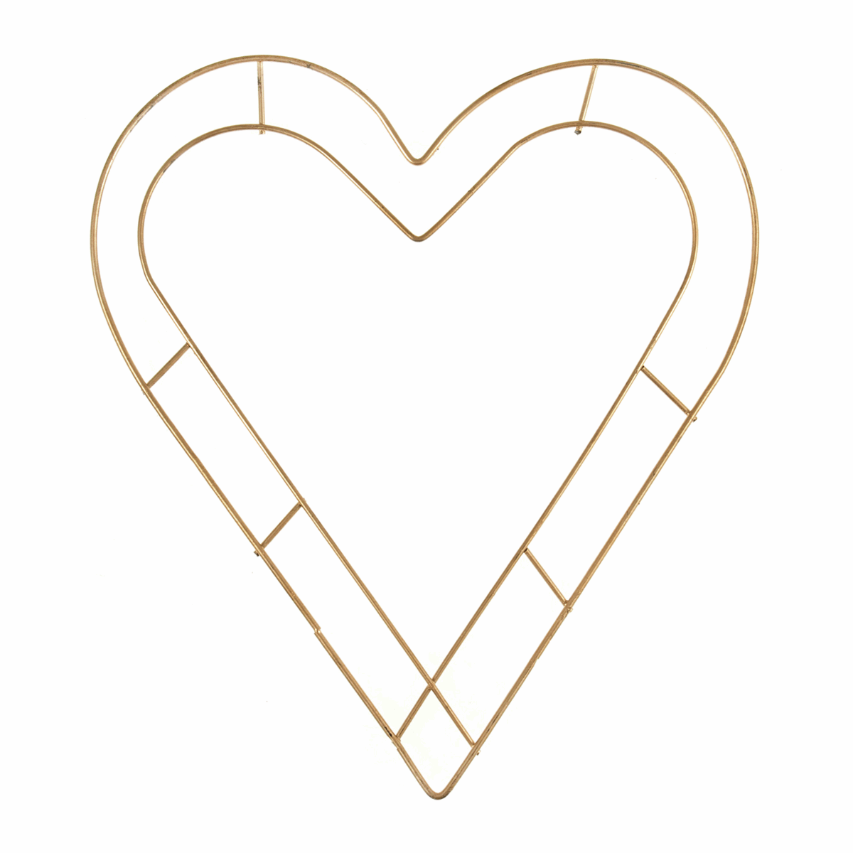 The frame is made out of metal, with two hearts attached to six rods for stability and greater focus on each section. The wreath measures 8 inches total diameter.