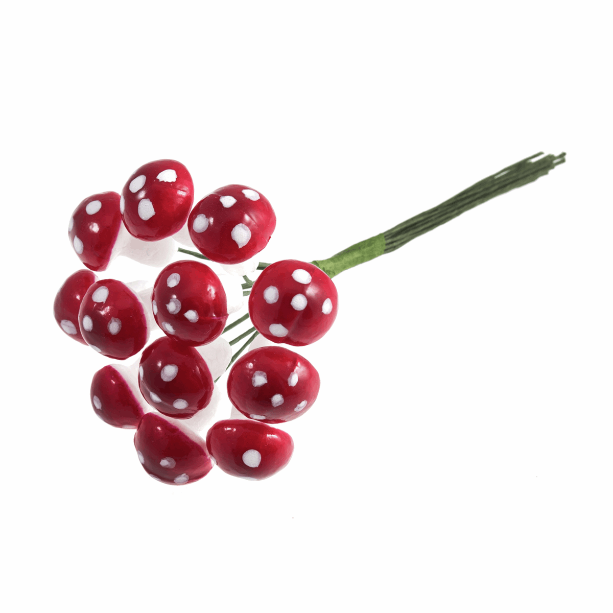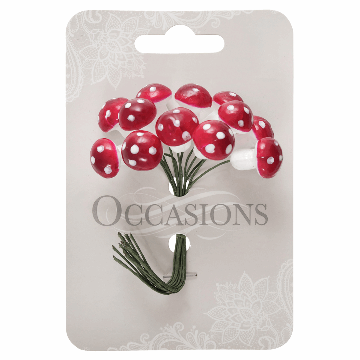 Each toadstool comes on a wire which can be pushed into oasis or wrapped around other items. There are 12 individual toadstool picks included, easy to position in any of your displays. They'll add a charming decorative finishing touch to any designs!