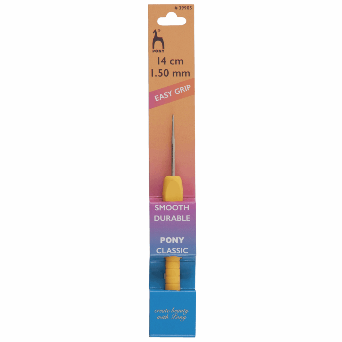 Experience superior comfort and control with the PONY Easy Grip Steel Crochet Hook - Flat Finger 14cm. Designed for both beginners and experienced crocheters, this 14cm crochet hook enhances your crafting sessions with its ergonomic design and durable 1.50mm steel construction.