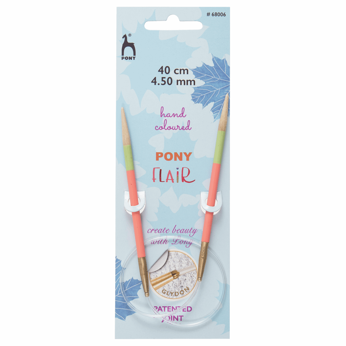 Enhance your knitting experience with the PONY 'Flair' Circular Fixed Hand Coloured Knitting Pins. Crafted with care, these pins combine functionality with eco-friendly materials to provide a delightful and sustainable knitting tool.