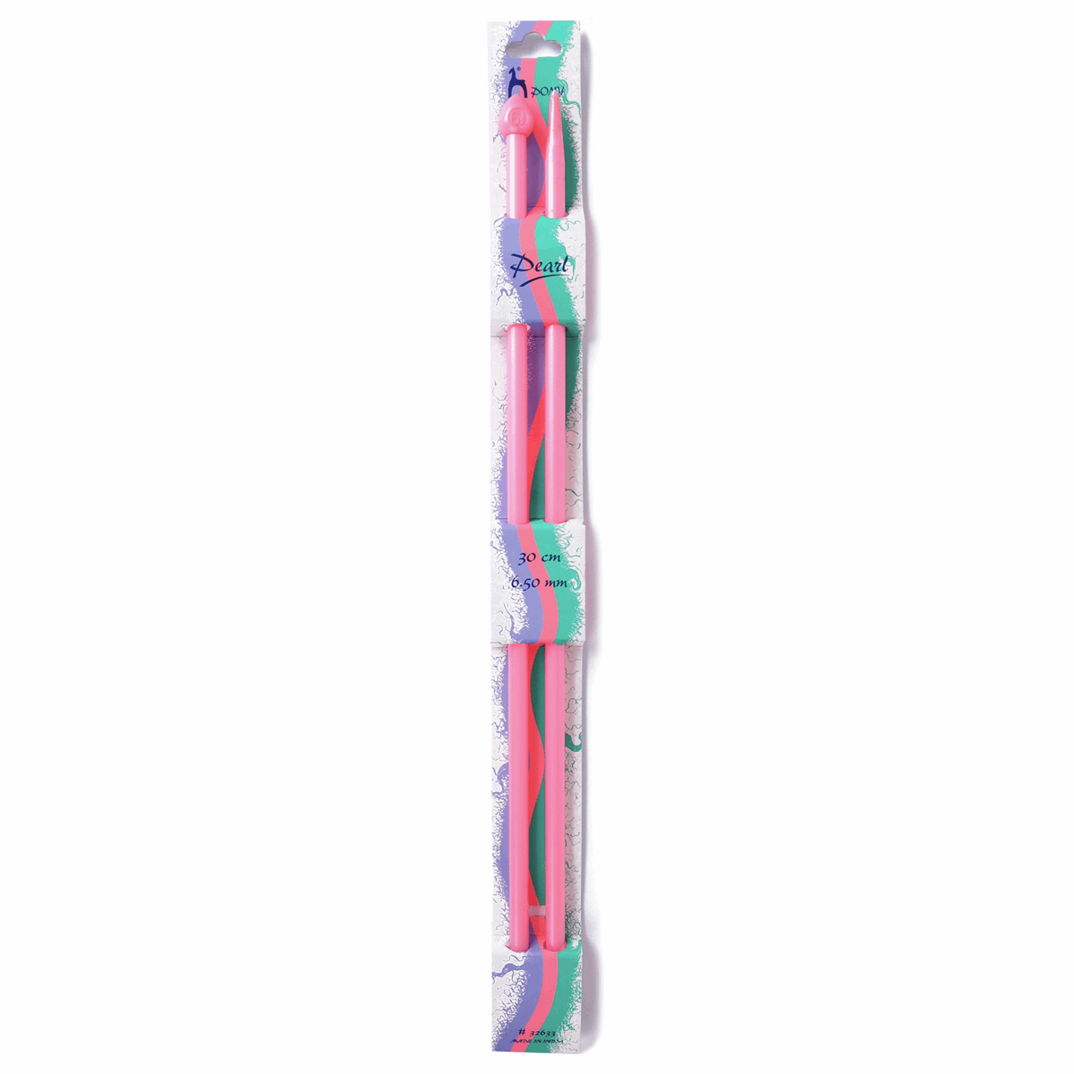 PONY Pearl knitting pins (30cm x 6.50mm) are the perfect addition to your knitting toolkit. These pony pearl knitting needles are crafted from high-quality cellulose acetate plastic, ensuring durability and a smooth finish for seamless stitch movement.