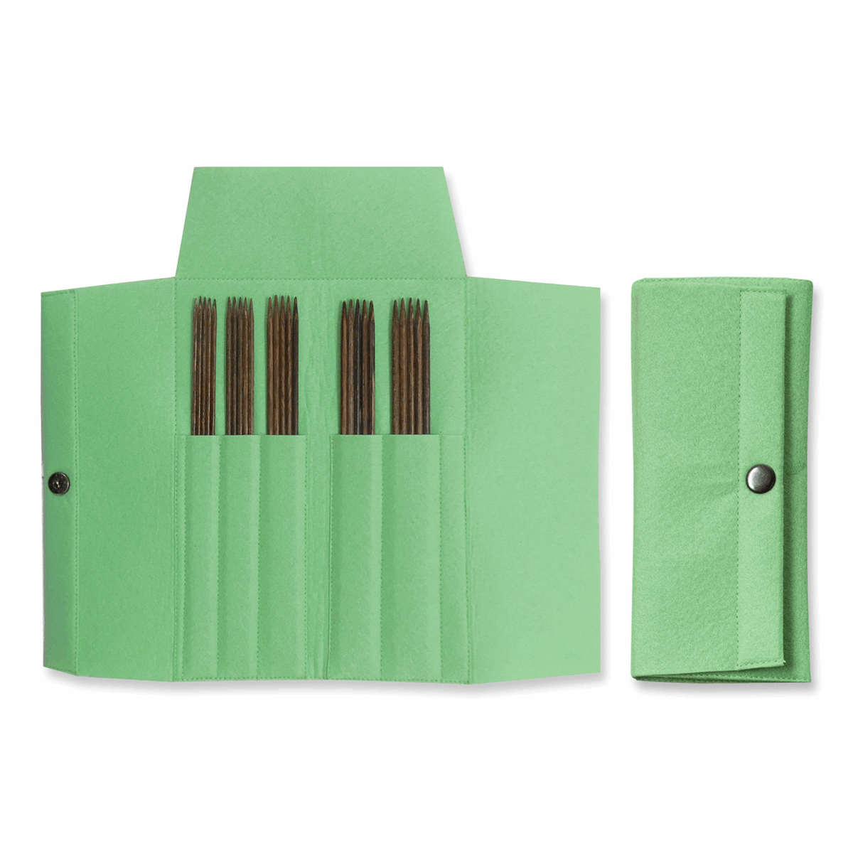 These double-ended needle sets are beautifully presented in an on-trend, soft felt case. Carefully sourced from sustainable forests, the exceptional combination of three natural woods creates needles that are exceedingly strong and flexible. Manufactured to perfection and containing no artificial dyes or pigments. Contents: 5 sets of 5 pins: 15cm in sizes 2.25, 2.50, 3.00, 3.25 and 3.50mm.