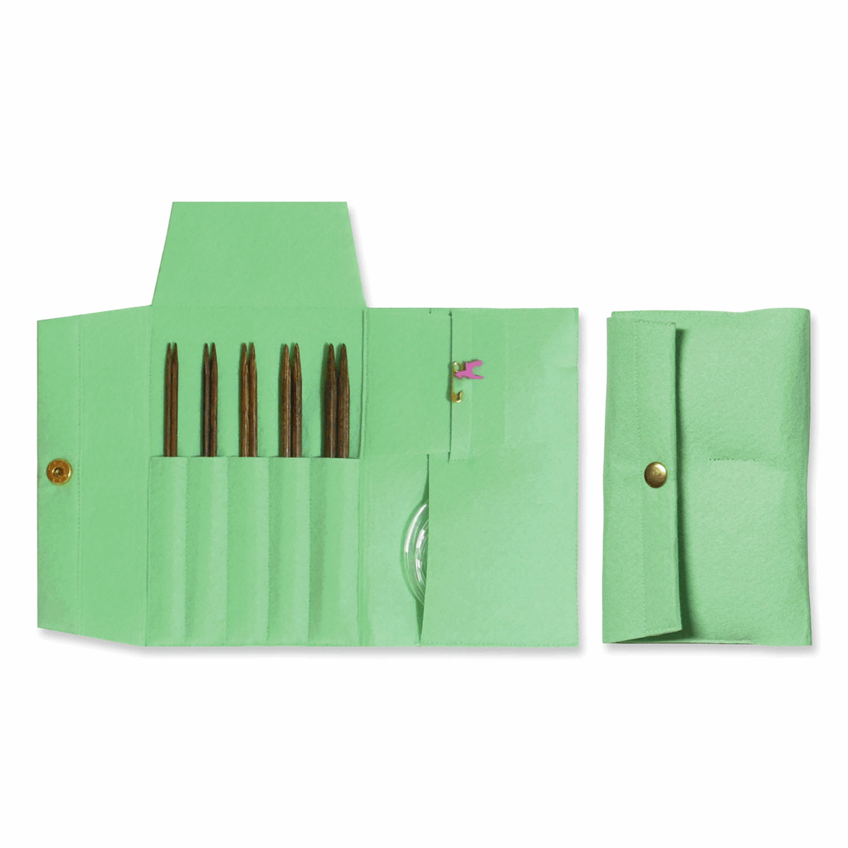 Needle case contains knitting pins carefully sourced from sustainable forests, the exceptional combination of three natural woods provides needles that are exceedingly strong and flexible. Manufactured to perfection and containing no artificial dyes or pigments. Contents: set of 5 pairs of 14cm pin shanks in sizes 3.00, 3.50, 4.00, 4.50 and 5.00mm; 3 cables for three lengths: 60, 80 and 100cm; 2 knobs for cable ends; 1 connector to combine cables.