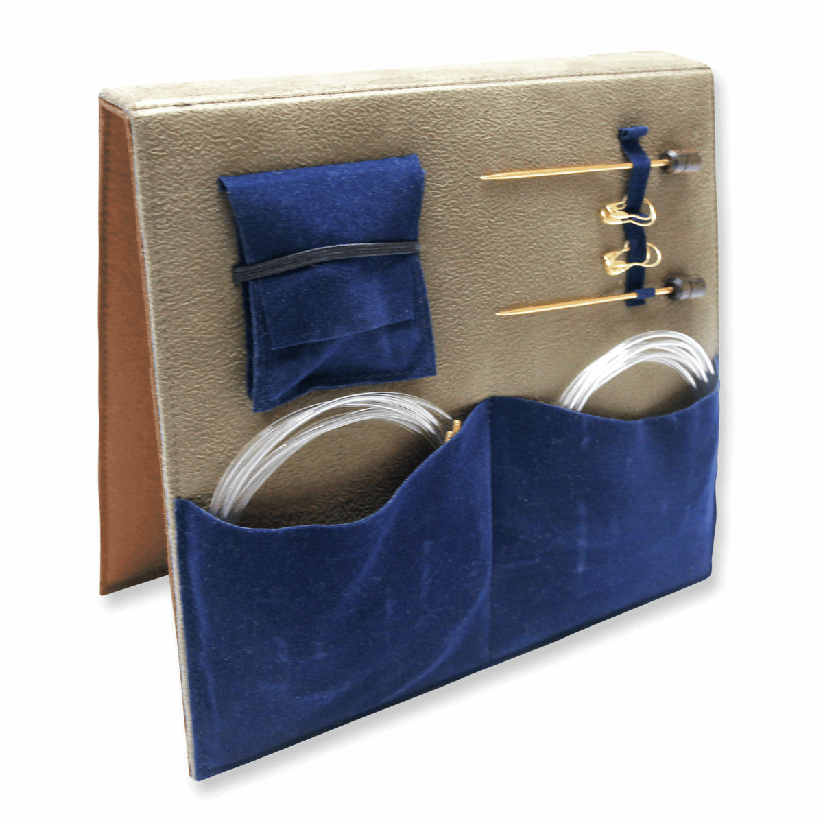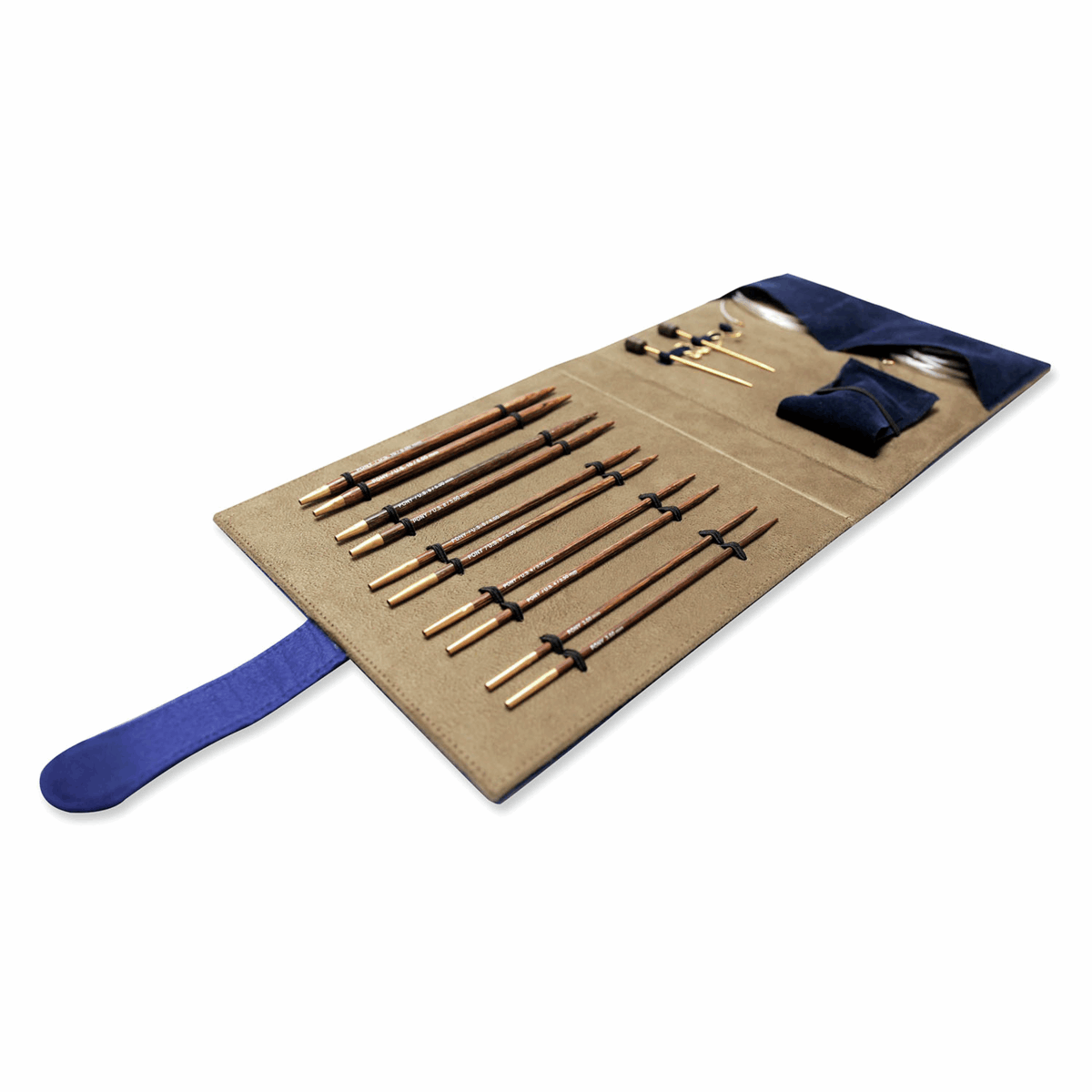 Needle case contains double-ended knitting pins made from an exceptional combination of three natural woods without any artificial dyes or pigments, these extraordinarily beautiful needles come in a luxury case and make a great gift for knitting enthusiasts. Contents: 1 luxury needle case; 2 knobs for cable end; 5 pairs of pin shanks 3.0, 3.5, 4.0, 5.0 and 6.0mm; 6 cables to make three lengths 60, 80 and 120cm; 1 connector to combine cables; 2 wool pins, for piecing knitted sections together; 4 pear safety stitch markers.