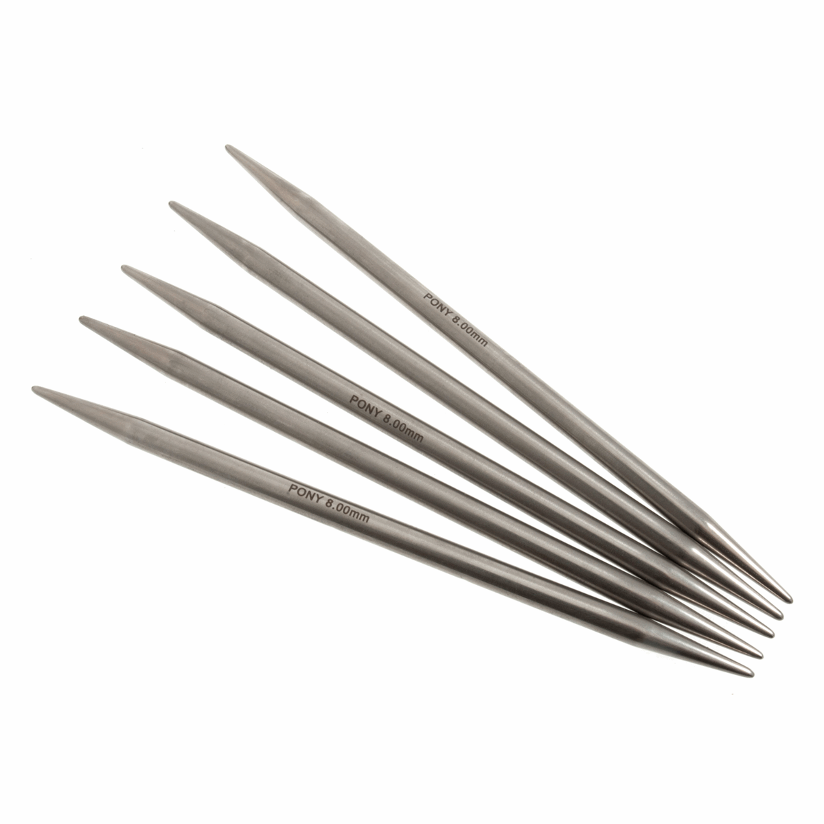 Experience the ultimate precision and comfort with the PONY 'Elan' Set of 5 Double-Ended Stainless Knitting Pins. Crafted from high-quality stainless steel and completely nickel-free, this knitting pins set is perfect for both beginners and seasoned knitters. Whether you're working on a delicate scarf or a complex sweater, these versatile pins set ensure smooth and efficient stitching every time.