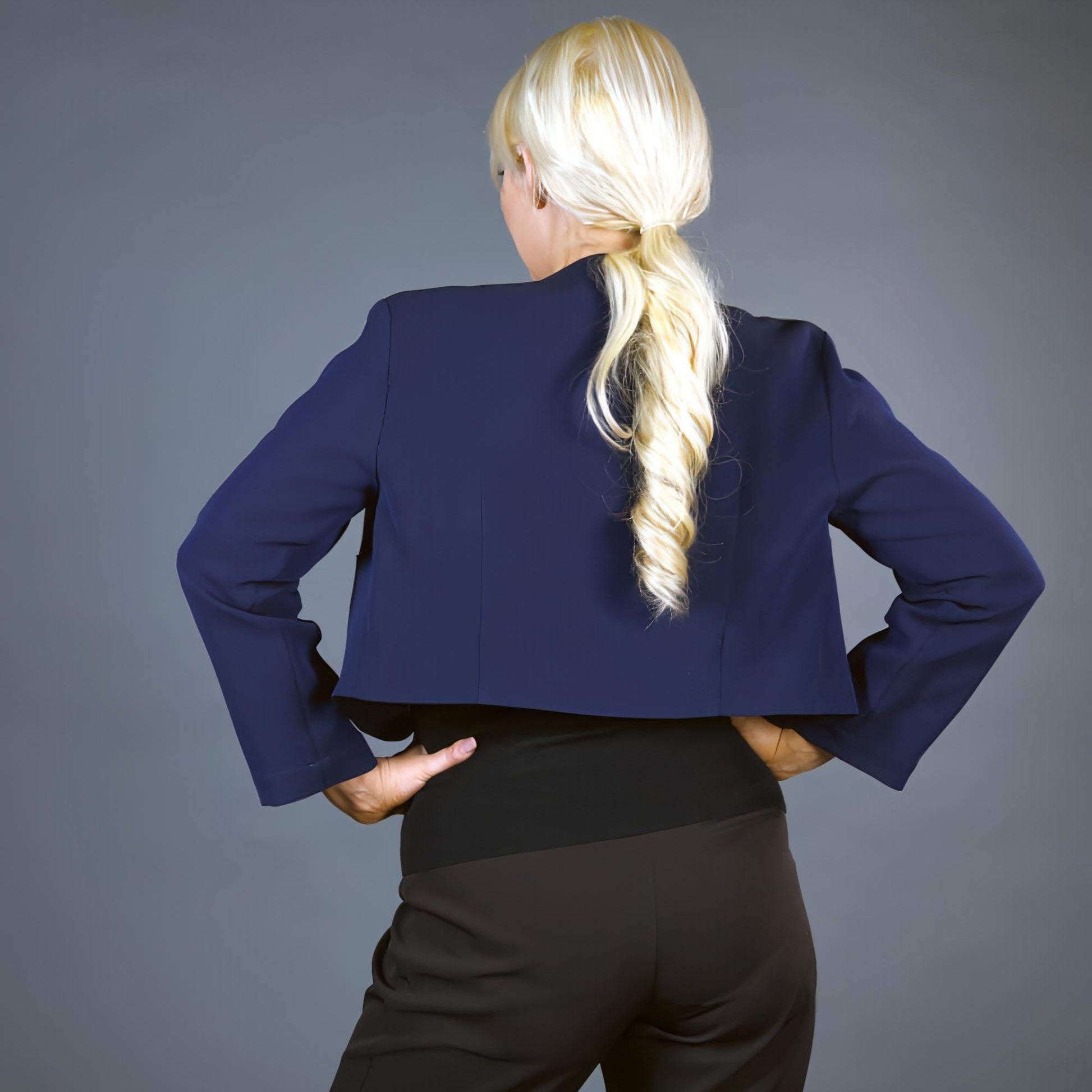 Adventurous Beginner construction, with or without pockets- the choice is yours. Wear with pencil skirt or palazzo pants? A little wrap jacket to cover the shoulders on a summer day, or to cover that strapless dress for the evening? Choices, decisions?... jacquard or cotton for the day... maybe a French lace for the evening?