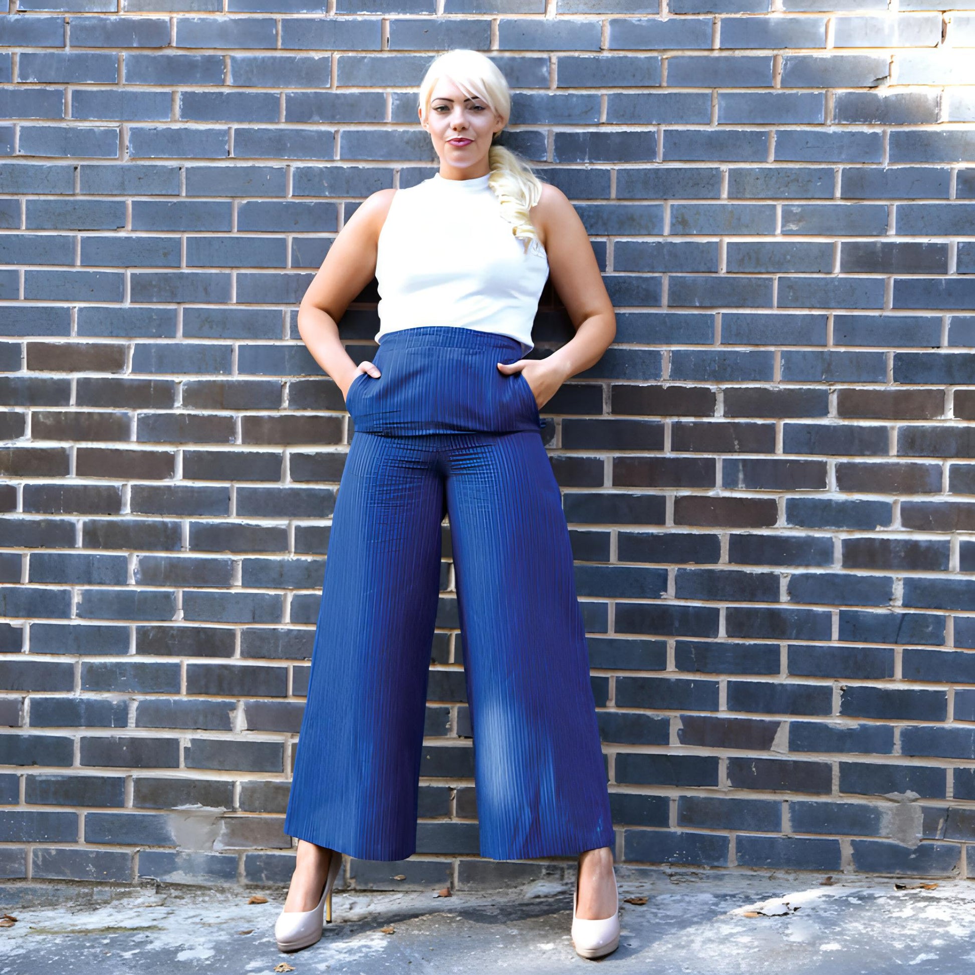A Beginner Pattern- construction makes it versatile to pair with a short top, t- shirt or pullover or go for a layered look with a long shirt. Maybe go for a lightweight cotton or sumptuous linen for Summer or Holidays, and a heavier worsted wool or jacquard for Winter.