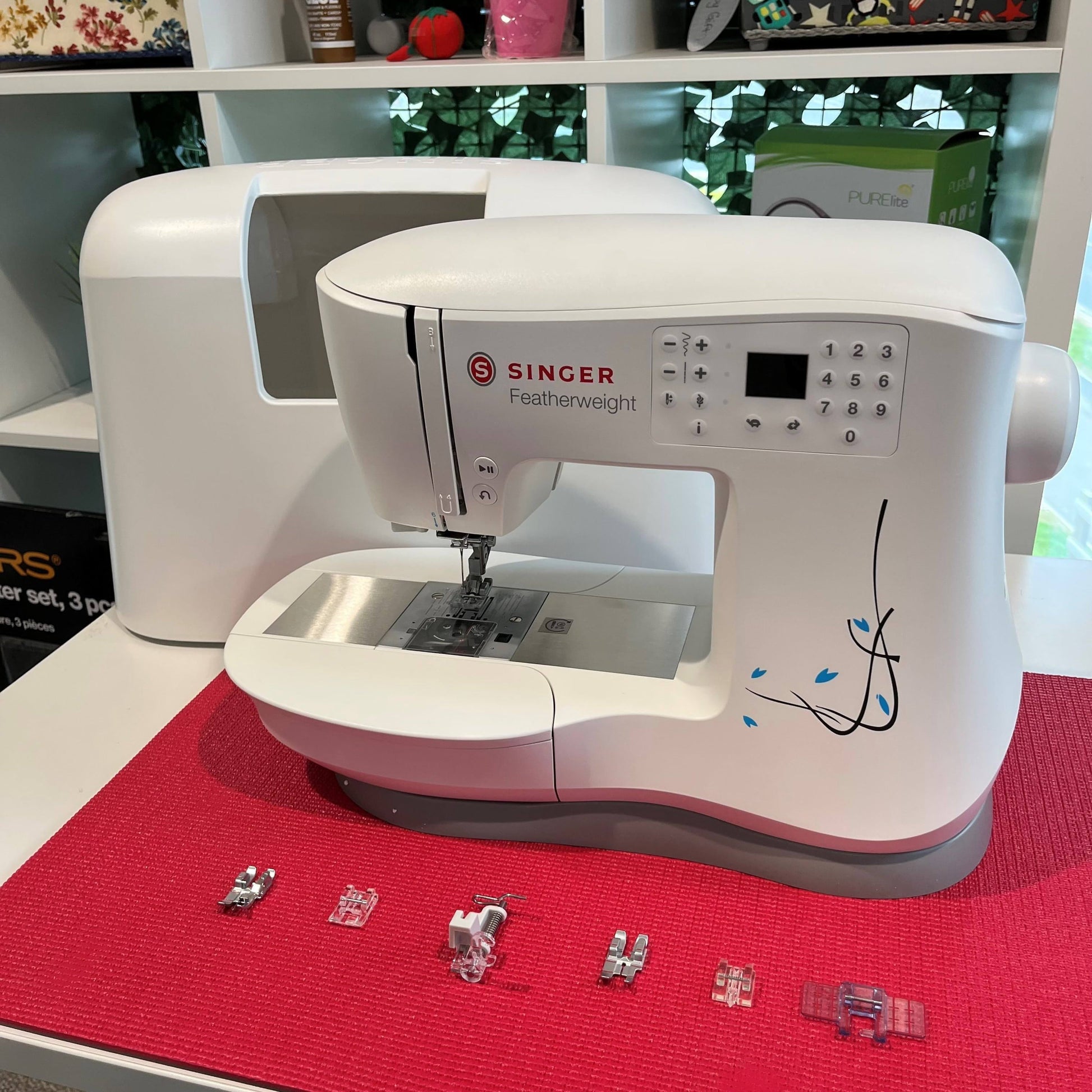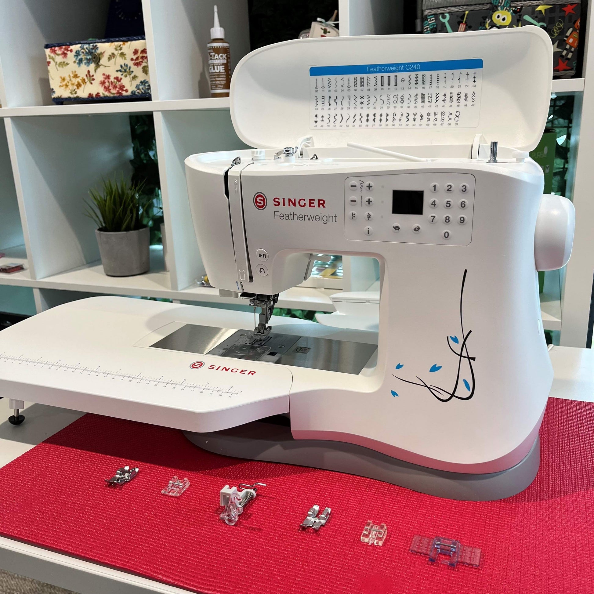 The Featherweight C240 sewing machine is great for sewing in small spaces or for taking to sewing classes! Sew all kinds of fabrics: from sheer to denim – even leather, thanks to the Integrated Even Feed System which feeds fabric evenly from both the top and bottom, so you can sew even difficult fabrics with confidence. Seams in napped fabrics like velvet and corduroy, as well as quilt layers, won't shift. Sewing over thick areas like hems in jeans is a breeze.