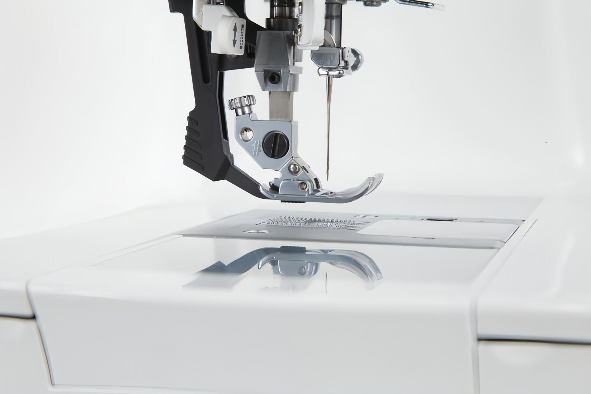 The surface of the machine's arm is made of stainless steel, providing a smooth surface that allows your fabrics to glide smoothly as you sew. -