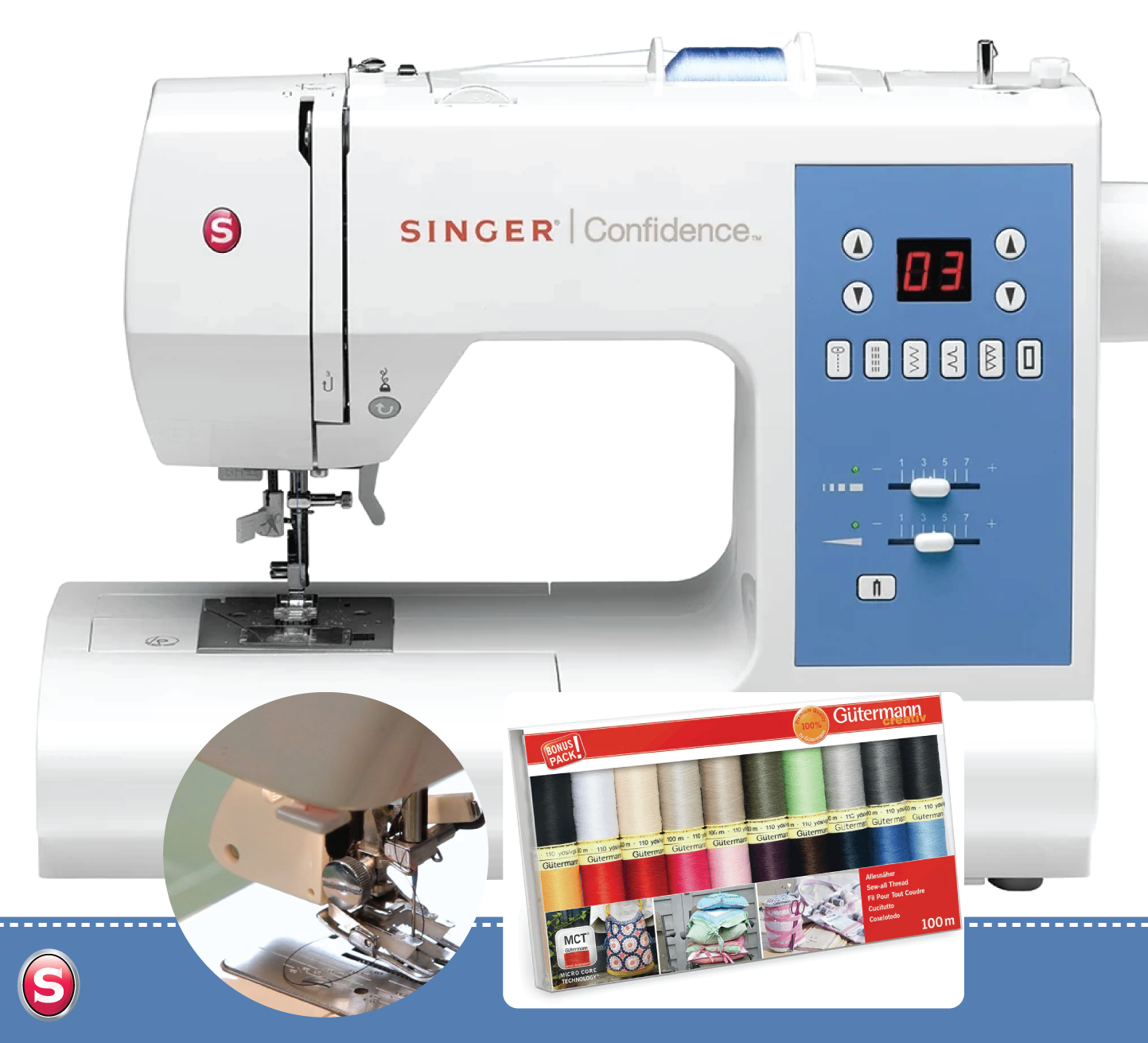 The Singer Confidence 7465 is a computerised sewing machine with a heavy duty frame so you can select a stitch with the touch of a button, and deal with heavier textiles with minimal hassle.