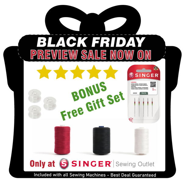 The Singer XL400 comes packed with many accessories including a Pack of Needles, Bobbins, an Auxiliary Spool Pin, a Large Spool Cap, a Medium Spool Cap, a Small Spool Cap, a Buttonhole Opener/Seam Ripper and Brush, a Screwdriver for Needle Plate, a Pair of Scissors, a Zipper Foot, a Satin Stitch Foot, a Blind Stitch Foot, a Button Sewing Foot, an Embroidery Foot and a Buttonhole Foot.
