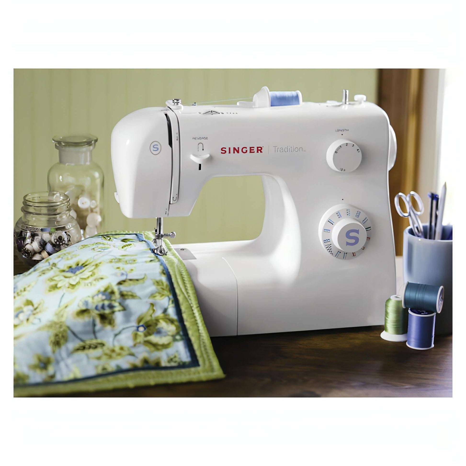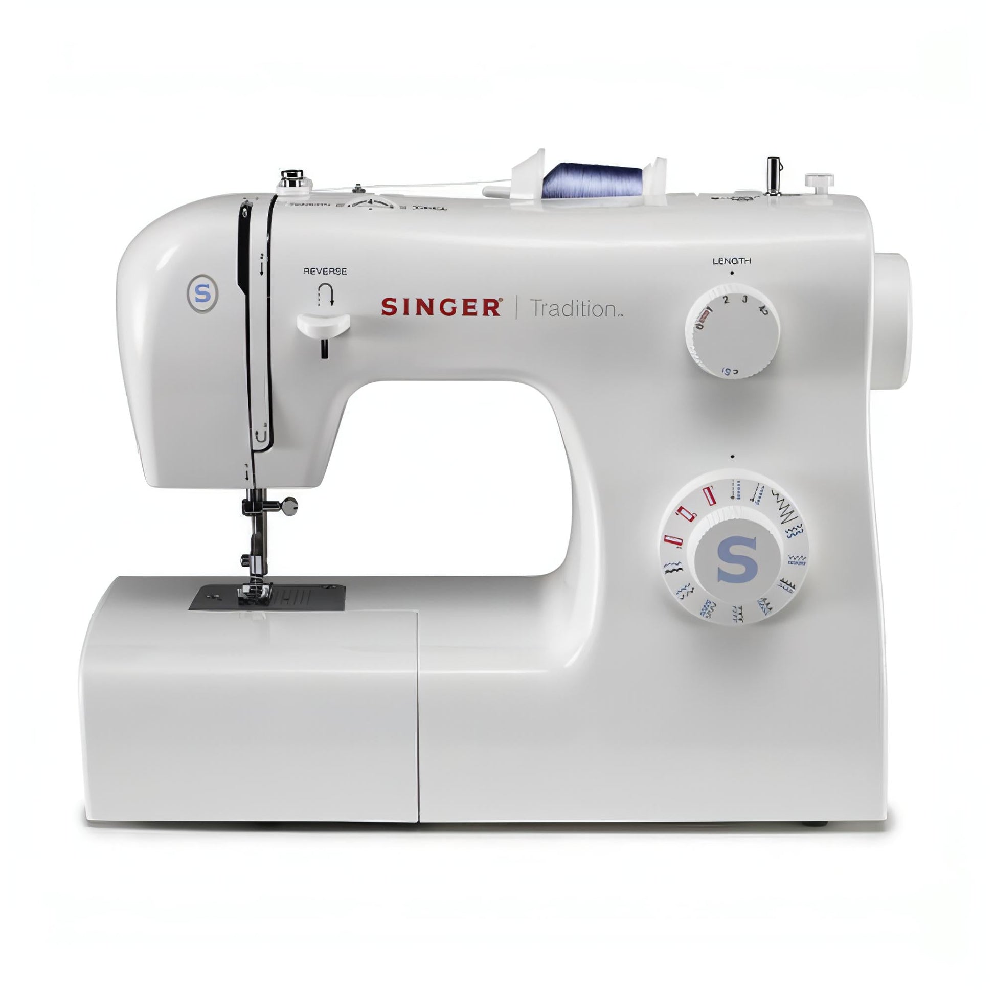 The SINGER 2259 Tradition has the features to make starting and growing a new hobby easy. This sewing machines features an automatic four-step buttonhole, easy stitch selection, and snap-on presser feet. Thread the machine quickly and easily. Just follow the arrows on the machine, and you are threaded in no time at all. Nineteen basic, stretch, and decorative built-in stitches provide options for everything from the most basic garment alterations to more elaborate home décor projects.