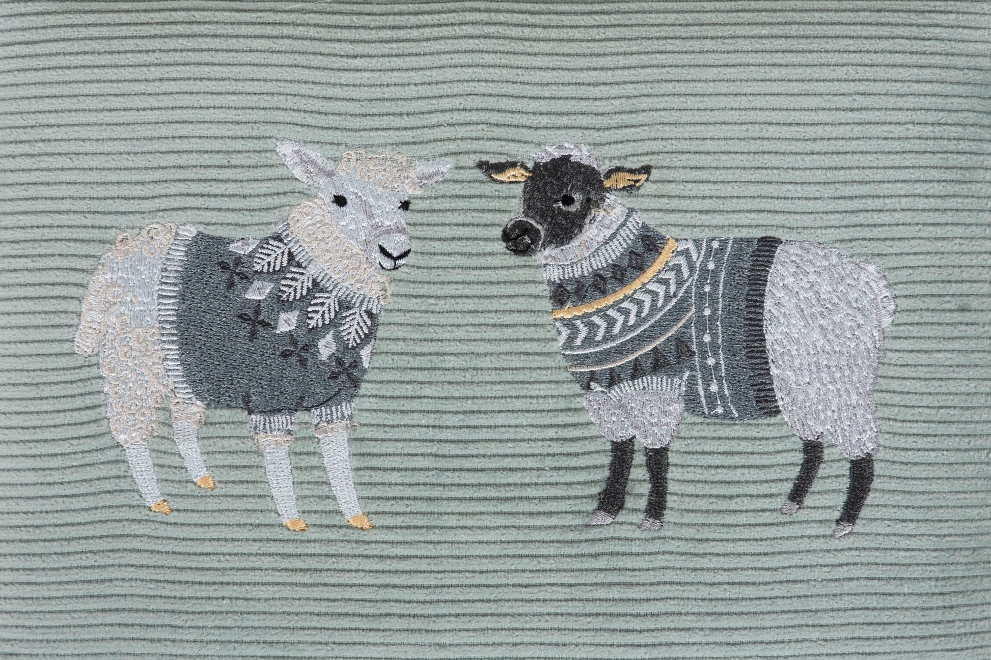 Medium-sized sewing box covered in cotton corduroy fabric with embroidered details on the lid. Corduroy covered handle. Hard plastic internal tray with compartments for sewing accessories. Internal pocket and pincushion inside lid. Spot clean only.